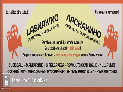 18 августа 2015 года на территории таллинского района Ласнамяэ стартует новый проект - "ЛаснаКино". Впервые в самом большом районе столицы Эстонии пройдёт показ авторского кино на открытом воздухе, который продлится пять вечеров.
