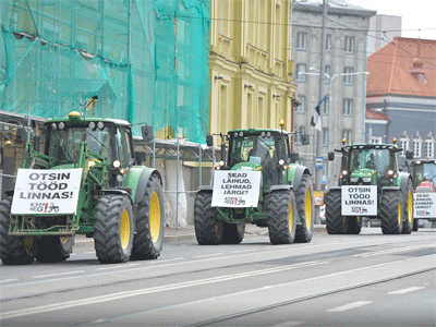 Организации фермеров Эстонии 14 сентября 2015 года проводят в центре Таллина манифестацию с требованием выделить аграрному сектору дополнительные средства. Устроители акции, каковыми являются Центральный союз земледельцев, Центральный союз хуторян и Торгово-аграрная палата, стянут на площадь у парламентского дворца на холме Тоомпеа около сотни тракторов, передает BNS.