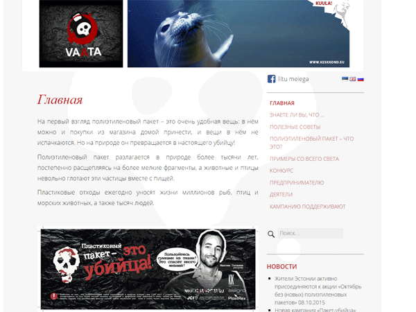 Стартовавшая в Эстонии осенью 2015 года акция «Пакет-убийца» за непродолжительное время объединила на своей странице в социальной сети Facebook более 2500 человек, согласившихся в октябре не покупать и не использовать в магазинах бесплатные полиэтиленовые пакеты. Инициаторы кампании приглашают всех желающих присоединиться к начинанию.