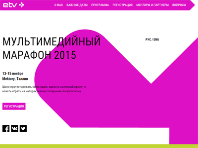 С 13 по 15 ноября 2015 года в таллинском инновационном центре Mektory в рамках семинара по разработке новых аудиовизуальных программ пройдёт Первый мультимедийный марафон ETV+.