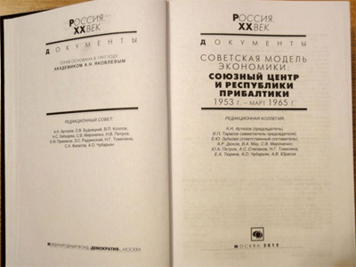 Каков был механизм принятия и согласования решений между союзным центром и республиками? Как улаживались конфликты и противоречия? Как изменялась структура национальных экономик? Какая роль в развитии отводилась инвестициям из Центра, а какая - внутренним ресурсам? Какова роль Центра в укреплении национальных экономик прибалтийских республик? На все эти вопросы, по словам Зубковой, даёт ответы подготовленный под эгидой Федерального архивного агентства сборник документов из Российского государственного архива экономики (РГАЭ), Архива новейшей истории (РГАНИ) и Государственного архива РФ (ГАРФ).