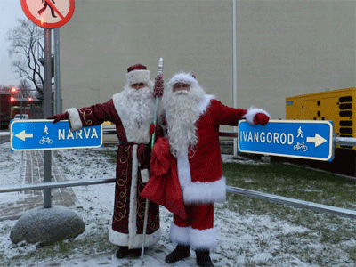 Йыулувана - эстонский Рождественский дед, которого и прохожие, и даже организаторы его встречи с Дедом Морозом называли Санта-Клаусом, пересёк границу в 9 часов утра. С российской стороны к нему вышел Дед Мороз. Коллеги обнялись ровно посередине моста и направились к ёлке на Петровскую площадь Нарвы, пишет региональное издание