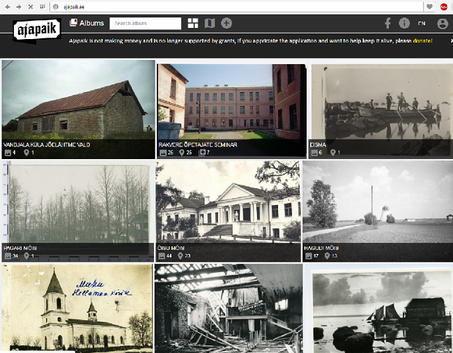Уникальный интерактивный проект по каталогизации и пересъёмке старых фотографий Эстонии Ajapaik с 2016 года лишился государственной поддержки и ищет другие варианты выживания - от материальной помощи до грантов.