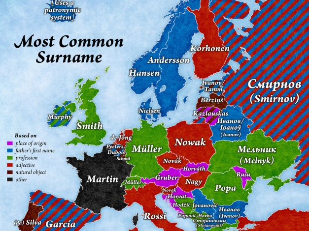 По мере составления карты ее автор сделал немало любопытных наблюдений. Например, в Исландии имя отца становится частью фамилии ребенка. То есть если отец, к примеру, Йон Эйнарссон, то его сын будет иметь фамилию не Эйнарссон, а Йонссон, а его дочь будет иметь фамилию Йонсдоттир.
