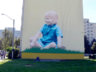 Результат творчества Эдгара Тедресаара и Пааво Кульдкеппа появился на торцевой стене одного из домов в таллинском районе Ласнамяэ, став фоном для детской площадки в парке Тондилоо.