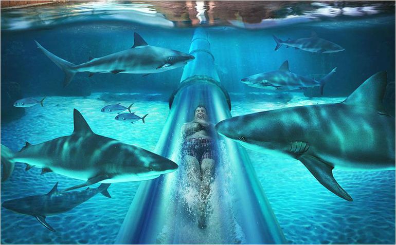 Также в центре будет научный парк, где маленькие посетители смогут найти себе занятие. Незабываемые впечатления ждут и взрослых: например, романтический ужин в океанариуме или даже ночь в обществе акул. Тех, кто очет насладиться пляжным отдыхом посреди зимы, ждет большой песчаный пляж и бассейн, в центре которого будет бассейн с акулами. Центр планируется открыть в 2019 году.