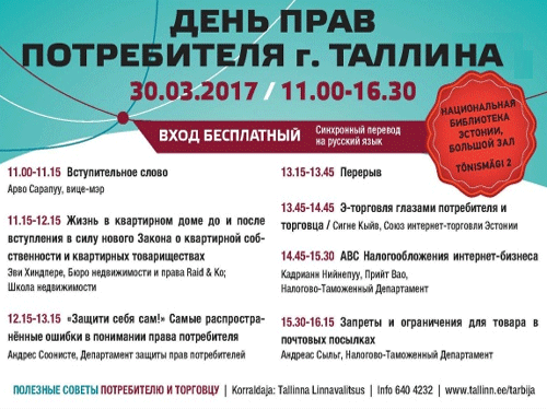 22.03.2017 - 11:58 В столице Эстонии 30 марта 2017 года в 11-й раз пройдёт День защиты прав потребителя