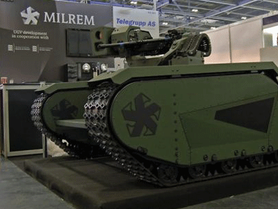 На фото: Эстонский самоходный гусеничный боевой робот разработки компании Milrem.