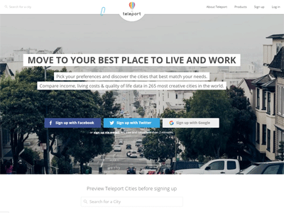 Teleport Cities, использует науку математические алгоритмы сопоставления, чтобы помочь работникам найти самые лучшие места для жизни и работы. В нём предоставляются в режиме реального времени данные о доходах, стоимости и качестве жизни в 260 городах по всему миру. В 2016 году более 250 000 пользователей программы совершили более миллиона запросов.