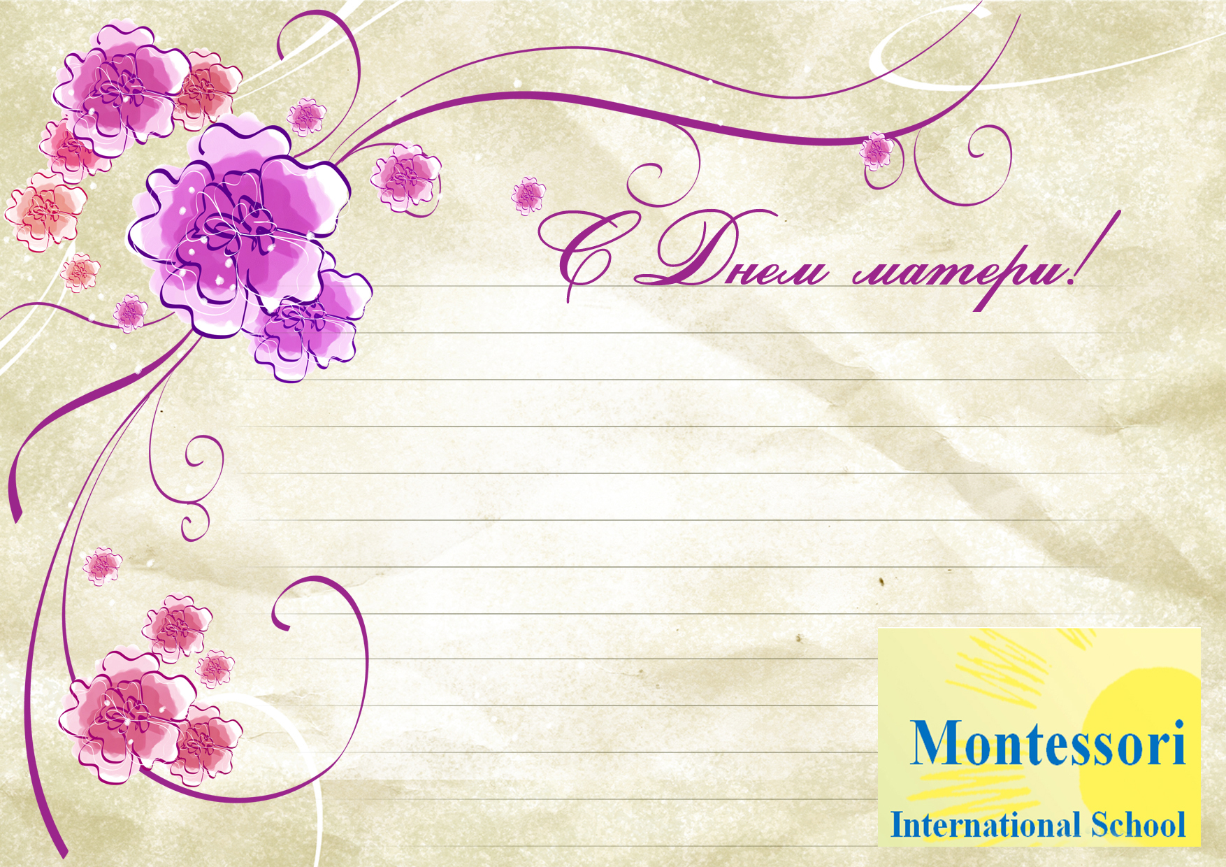 11 мая 2012 года дети и педагоги Интернациональной Школы Монтессори, которая с начала нынешнего года работает в таллинском районе Ыйсмяэ, приглашают всех родителей с детьми от трёх до шести лет на праздник, посвящённый Международному Дню матери, который ежегодно отмечается во второе воскресенье мая.