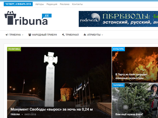 На русскоязычном информационном поле Эстонии - пополнение. О запуске нового информационно-публицистического портала Tribuna.ee 31 декабря 2017 года сообщил известный публицист и телеведущий, издатель журнала «Красивая жизнь» Родион Денисов: