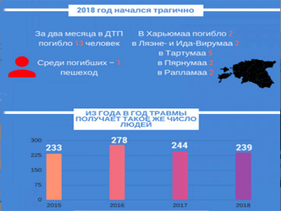 К этим цифрам стоит добавить также четверых погибших в ушедшей под лёд машине в Пярнумаа 6 февраля, хотя этот факт полицейские и спасатели Эстонии относят к несчастным случаям на воде.Такого количества жертв происшествий, связанных с автомобилями, в стране в два первых месяца года не было очень давно.