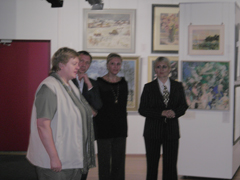 На фото: Заведующая отделением славянских языков и литератур филологического факультета Латвийского Университета профессор Людмила Спроге (слева) рассказывает о значении Серебряного века в культуре. Справа организатор "Русского бала" Марина Теэ
