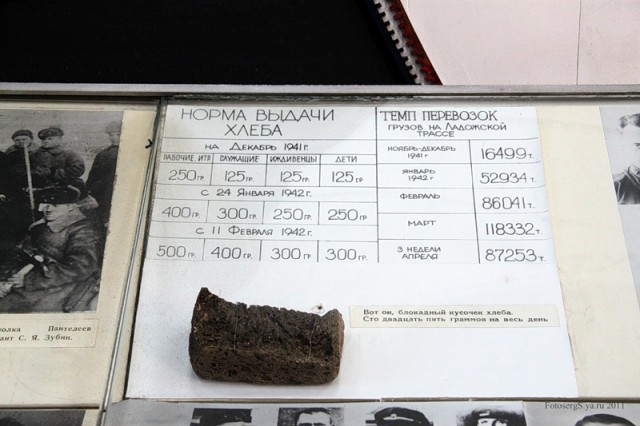 С 20 ноября 1941 г. была введена минимальная норма выдачи хлеба: рабочие получали его по 250 грамм, служащие, иждивенцы, дети до 12 лет – по 125 грамм. В конце ноября 1941 г. по льду Ладожского озера удалось проложить автомобильную дорогу в осажденный город. Начался подвоз продовольствия. Ленинградцы назвали эту ледовую трассу «Дорогой жизни».