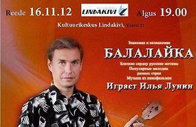 16 ноября в 19.00 в ласнамяэском Культурном центре Линдакиви состоится концерт Ильи Лунина - единственного в Эстонии профессионального исполнителя на редком и уникальном музыкальном инструменте – балалайке.
