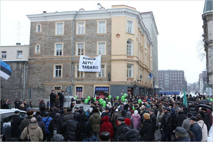 "Столица", по предварительным данным, на митинг пришло более пятисот человек, среди которых были и русские и эстонцы. Многие из этих людей приходят на митинг не первый раз. В основном это пенсионеры, пенсия которых занижена до невозможности, им просто приходится выживать в условия политики нашего правительства. Причина, по которой они сегодня пришли к зданию Министерства экономики одна, люди хотят, чтобы правительство обратило на них внимание. Как сказали две пенсионерки: «надоело молчать, терпеть. Бедность заставляет нас выходить на улицу». Люди жалуются, что сильно выросли цены на отопление и электричество. Выжить очень тяжело.