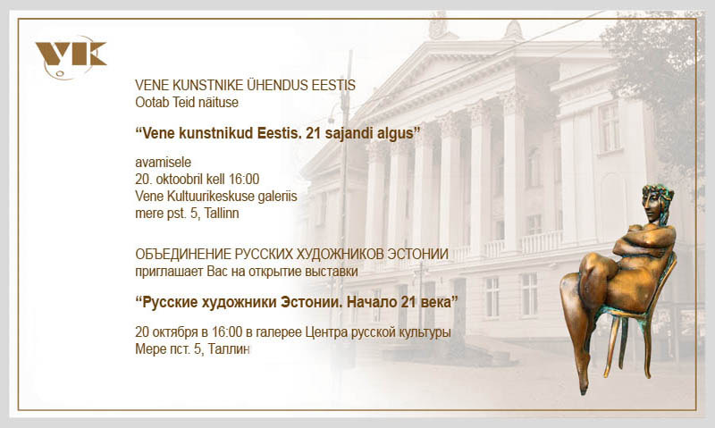 Объединение русских художников Эстонии открывает 20 октября выставку «Русские художники Эстонии. Начало 21 века», которая проходит в двух галереях таллинского Центра русской культуры до конца ноября.
