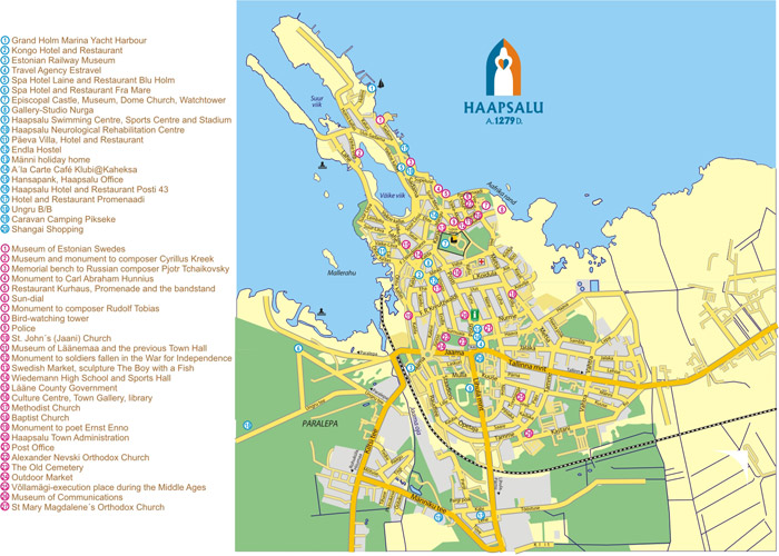 На фото: Карта города Хаапсалу с его достопримечательностями.