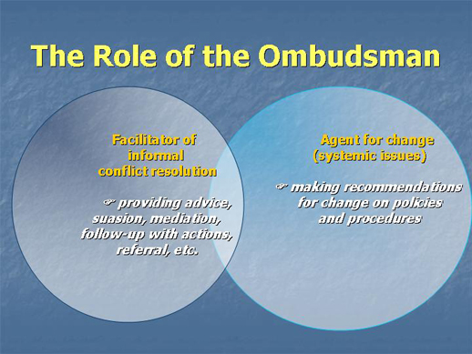 Согласно уставу Таллина, городской омбудсмен или правовой посредник — независимое в своей деятельности должностное лицо, основная задача которого — контролировать соблюдение добрых традиций управления и принципов обеспечения основных прав и свобод в городских учреждениях.
