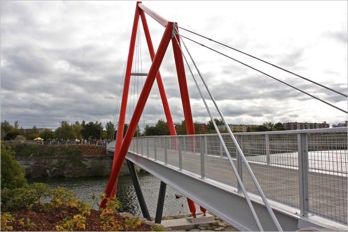Мост через пруд на месте бывшего карьера соединяет две части парка - Семейный парк с Горным - и позволяет попасть из квартала Паэ прямо к зданию управы района Ласнамяэ. Его длина – 25 метров, а ширина – 3 метра. Перила и пилоны моста будут подсвечиваться в темное время суток. Кроме моста на пруду также открылся фонтан с подсветкой.