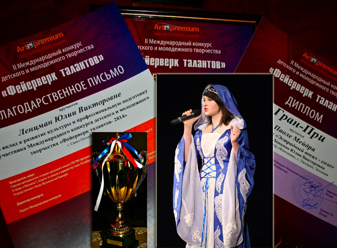 Для таллинского творческого центра "Фантазия" начало нового 2014 года ознаменовалось ярким событием. С 5 по 9 января в Северной столице России Санкт-Петербурге прошел II Международный конкурс детского и юношеского творчества "Фейерверк талантов-2014", где обладателем Гран-При стала воспитанница центра - юная певица Паола Мейдра.