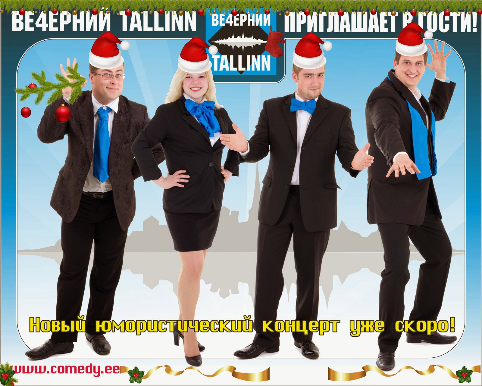 Как отмечают организаторы, шоу «Ве4ерний Tallinn» уже третий год радует жителей Эстонии юмором на самые разные темы. Теперь оно впервые будет представлено в Нарве. Традиционно темами для шуток становятся самые актуальные события, происходящие в Эстонии, отечественные и иностранные политики. Обязательными составляющими каждой программы являются пародии, фото- и видеоновости.