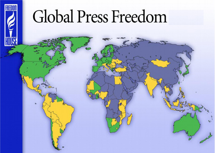 Три первых места рейтинга свободы журналистики по Freedom House в 2014 году занимают Голландия, Норвегия и Швеция. Бельгия и Финляндию на 4-5-м местах, Люксембург, Швейцария, исландия и Дания - на 6-9-м, на 10-м месте идёт Андорра, на 11-м Лихтенштейн, а места с 12-го по 14-е делят Палау, Монако и Сан-Лючия.