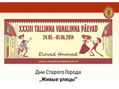 24 мая 2014 года открываются XXXIII Таллинские дни Старого города, которые в этом году проходят под девизом "Ожившие улицы". Как сообщает пресс-служба таллинской мэрии, на этот раз они продлятся до 1 июня.