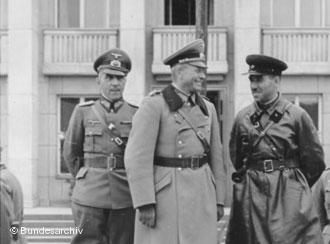 В центре - генерал Гейнц Гудериан, справа - комбриг Семён Кривошеин