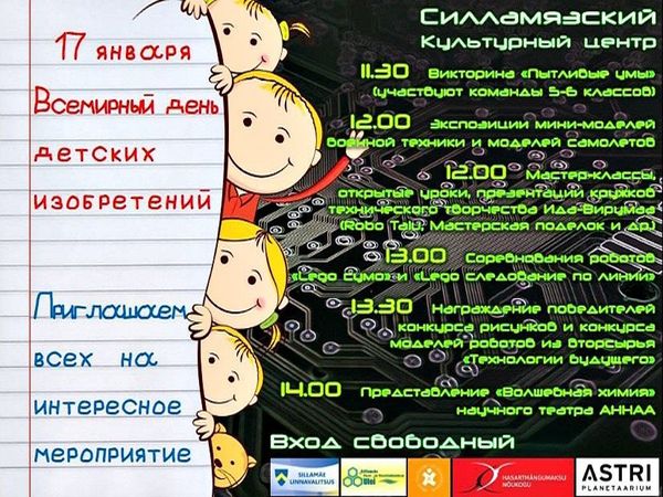 17 января культурный центр города Силламяэ приглашает отметить всемирный День детских изобретений.