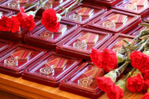 - Дорогие ветераны! Эти юбилейные награды к 70-летию Великой Победы – еще одно свидетельство вашего мужества, стойкости и героизма. На вашу долю выпали тяжелая военная пора. Хочется высказать огромную благодарность Вам за то, что Вы не только отстояли свободу и независимость нашей страны, но и практически заново ее восстановили. От всей души поздравляю с государственными наградами! Желаю Вам многих лет жизни, крепкого здоровья и благополучия! Вручение наград- это первый шаг к началу празднования 70-летия Великой Победы. Сегодня мы начали процесс вручения юбилейных медалей, который продлится до 1 мая. Всех, кто сегодня собрался в этом зале, мы просим к нам 9 мая на приём по случаю 70-летия Дня Победы!
