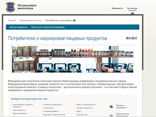 Министерство сельского хозяйства Эстонии собрало всю важнейшую информацию о маркировке пищевых продуктов на созданном и на русском языке сайте toidumargistus.ee, который даёт информацию об общих принципах маркировки, об отметке обязательной информации и продуктах питания, а также о требованиях, предъявляемых к составу продуктовых товаров.