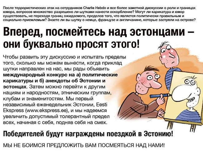14.05.2015 - 13:15 Газета Eesti Ekspress объявила всемирный конкурс анекдотов и карикатур об эстонцах