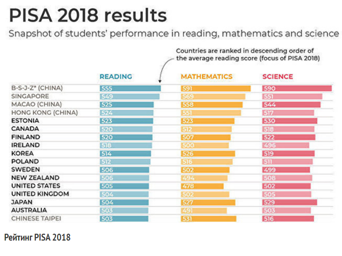 Официальный отчёт по образовательному тесту PISA 2018 - здесь (формат .pdf на английском языке).