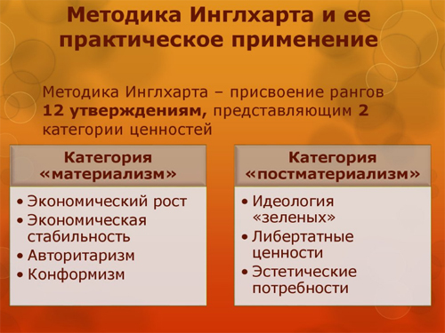 По сравнению с ситуацией пятнадцатилетней давности, сократилось число людей, для которых на первом месте – материальные ценности, деньги и успех. При этом возросло число тех, кто активнее заботится о своем здоровье и окружающей среде, считает себя ответственным за свои поступки, проявляет политическую активность и бо́льшую толерантность.