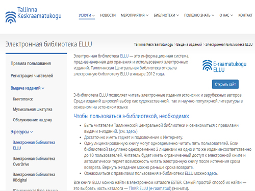 Центральная библиотека столицы Эстонии в марте 2020 года открыла для всех жителей страны возможность зарегистрироваться в качестве своего читателя, чтобы получить бесплатный доступ к интернет-библиотеке ELLU.