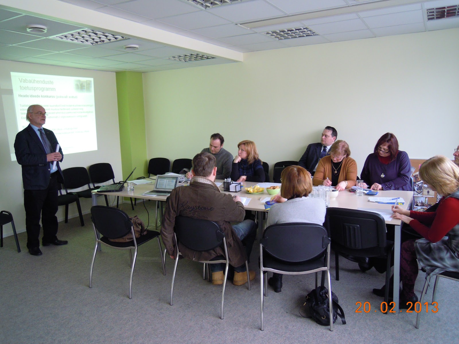 В аудитории, где проходила встреча, сразу создалась теплая, домашняя и приветливая атмосфера. Открывая мероприятие Агу Лайус на хорошем русском языке рассказал о том, какие программы имеются и чего гражданские объединения могут ожидать в 2013 году, ответив затем на все вопросы участников визита. Во второй части полуторачасовой встречи Катрин Барнабас, также очень хорошо владеющая языком Пушкина и Толстого, рассказала о том, какие ошибки чаще всего делают ходатайствующие при подаче своих проектов.