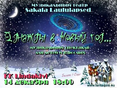 14 декабря 2013 года в главном зале культурного центра "Линдакиви", расположенного в таллинском районе Ласнамяэ, музыкальный театр Sakala Laululapsed творческого центра "Фантазия" представит зрителям свой музыкальный спектакль для детей и взрослых "Однажды в Новый год...".