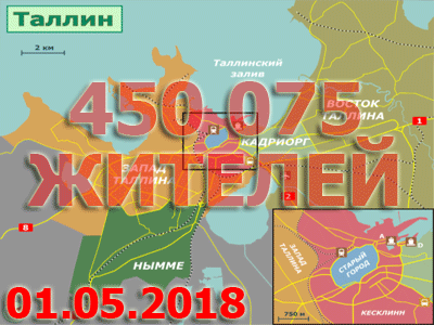 По данным Регистра народонаселения Эстонии, по состоянию на 1 мая в 2018 года в Таллине было зарегистрировано 450 075 жителей. За месяц эта цифра увеличилась на 289 человек, а с начала года - на 1311.