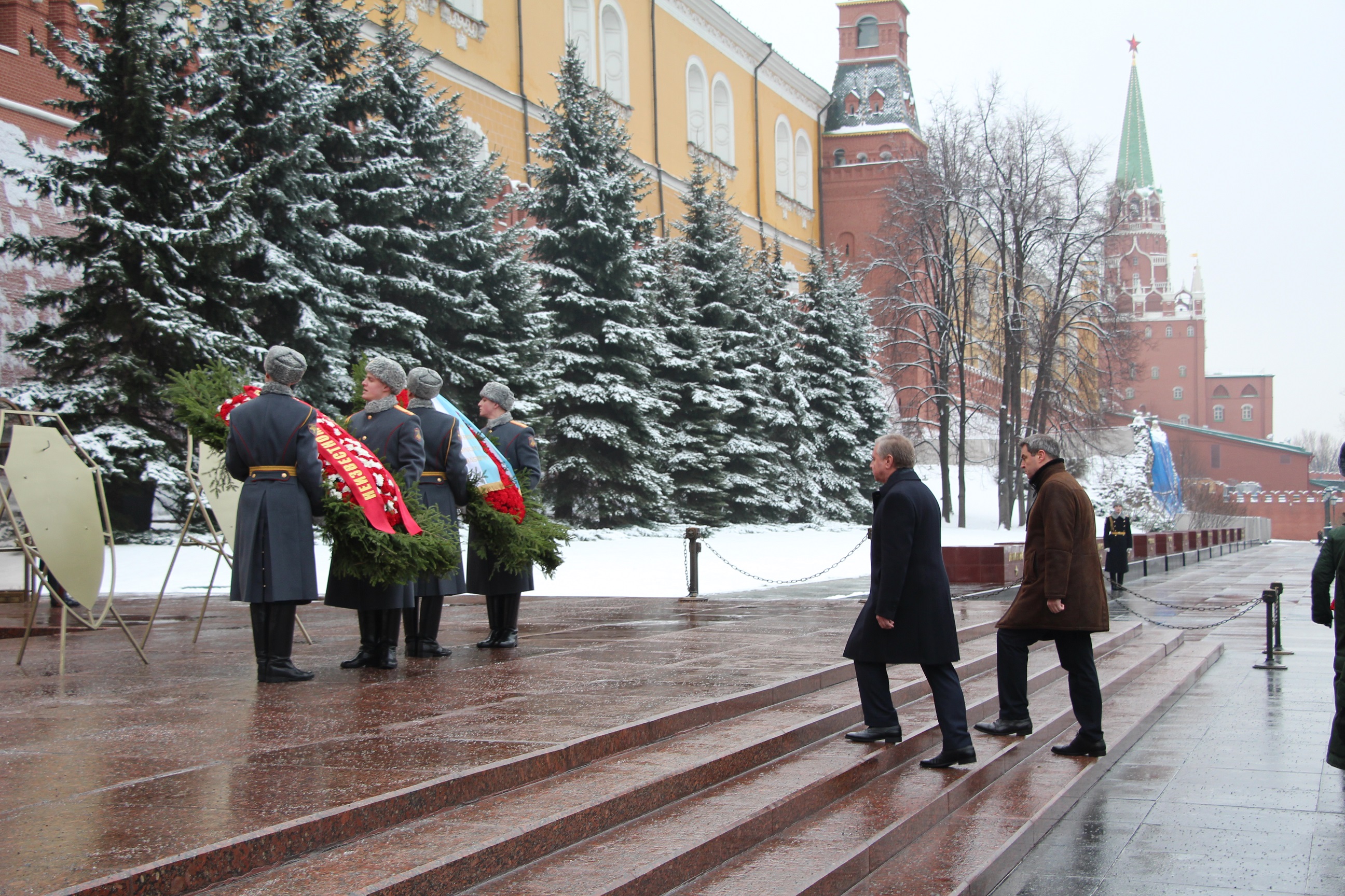 Министр Правительства Москвы, руководитель Департамента внешнеэкономических и международных связей города Москвы Сергей Черёмин и Премьер-министр федеральной земли Бавария Маркус Зёдер 29 января 2020 года приняли участие в церемонии возложения цветов к памятнику Неизвестного Солдата в Александровском саду Московского Кремля.